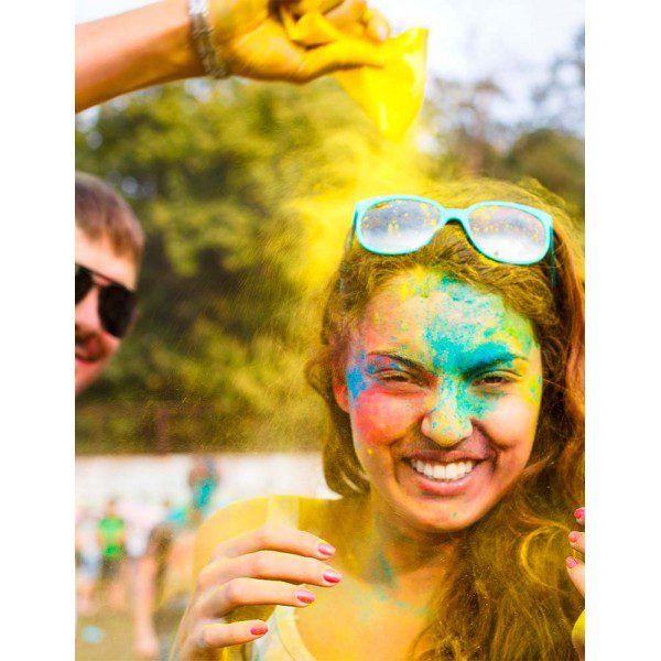 Prodotto 100% naturale non infiammabile. Polvere Holi in confezione da 75 g