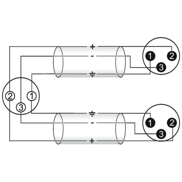 - XLR socket to 2 XLR plugs, bridged