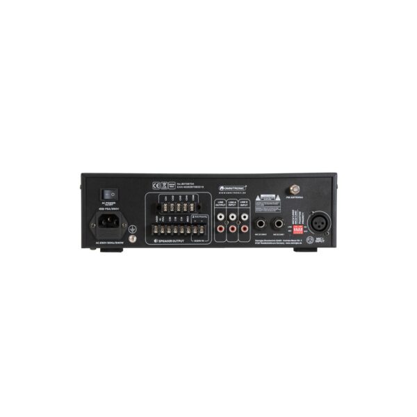 4-zone PA mono mixing amplifier, MP3 player, Bluetooth, zones switchable, 120 watts