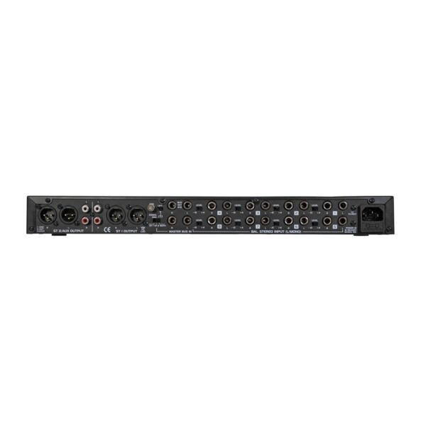 | Connections: | Input: line via 8 x 6.3-mm-jack (bal.) Input: Microphone via 1 x 3-pin XLR Output: master via 2 x 6.3-mm-jack (bal.) Output: AUX via 1 x 6.3-mm-jack (bal.) |