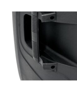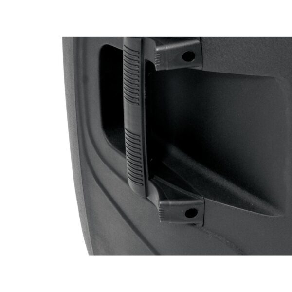 - Light-weight black plastic enclosure with metal grille, monitor shape and carrying handles