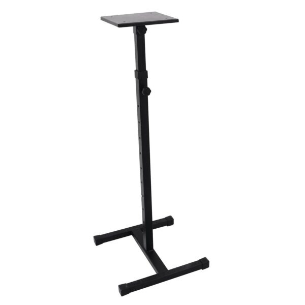 When it comes to monitors in the own four walls or in a studio, then everybody has its own philosophy. One is placing his speakers a little bit higher, another one a little bit lower and still another one tries to form an equilateral triangle with the speakers and the listener. The reason behind all this different behaviours is quite simple: Everybody just wants to listen to the music in the ideal way. To securely find your way to this goal we like to set our monitor stand to your side. It was made of steel, is suited best for studio monitors and can call an autolock safety-pin its own. Our implement will no let you or your monitors down and definitely help to find the perfect place for your monitors.