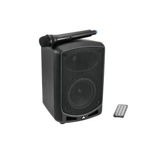 Mobile 8″ PA system with battery operation, Bluetooth, DSP and wireless microphone