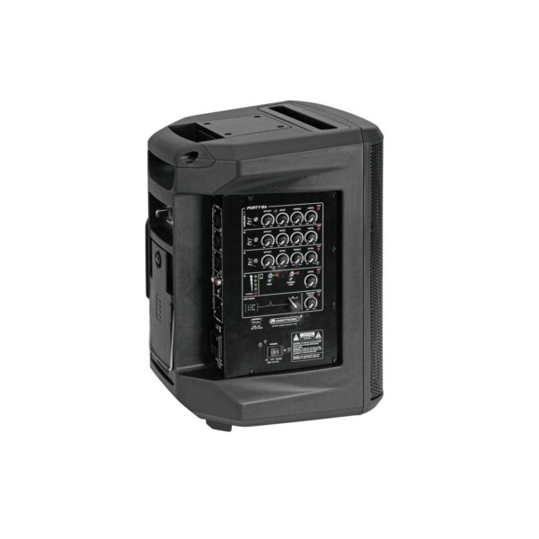 The PORTY-8A is an ultra-portable, battery-powered speaker with 120 watts output power that delivers professional, high-quality sound. The all-in-one 8″ PA system offers a full-featured 4-channel mixer with DSP effects and multiple connection options for microphones, instruments and line sources, as well as a registration-free UHF wireless receiver with dynamic handheld microphone. The latest Bluetooth 5.0 technology with TWS support ensures fast and stable wireless connections to Bluetooth audio sources and links two PORTY-8A systems for stereo setups.The powerful battery provides easily over 6 hours of continuous music playback without interruption for garden parties, singers/songwriters, karaoke, trade shows, fitness instructors and presentations. The 8 kg lightweight plastic enclosure comes equipped with a double flange for tripod mounting and tilts back for monitor applications. You can even charge your personal devices via the USB charging port and place them in the built-in tablet stand!