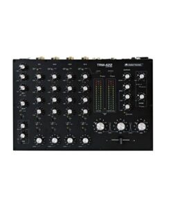 - Outputs: master and booth (XLR/RCA L/R), record (RCA L/R), master insert send/return (RCA L/R), FX in/out (stereo jack)