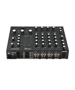 | Channels: | Input chanel: 4 x stereo with Line-Line/Phono switch via RCA, channel control via Rotary, 3-band tone control EQ, source selector, gain control, CUE switch, FX routing switch, Crossfader selector switch, Microphon chanal: 2 x mono via XLR, channel control via Rotary dial, ON AIR switch, Master output: 2 x stereo via XLR, channel control via Rotary Booth output: 2 x stereo via XLR, channel control via Rotary Rec. output: 1 x stereo via RCA Headphones output: 1 x stereo via Plug 6,3mm/3,5mm (Jack), channel control via Rotary dial, Cue mix split function, |