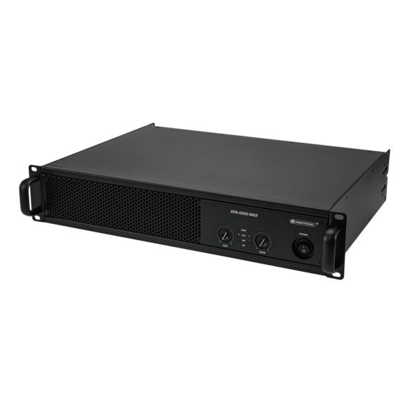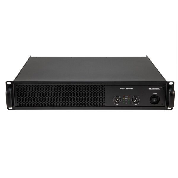 Class AB PA amplifier with limiter, 2 x 500 W RMS (4 ohms), 2 x 300 W RMS (8 ohms)