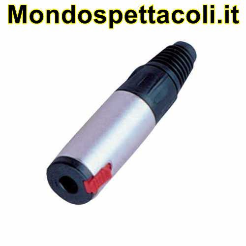 Presa jack mono 6,3 mm. con corpo in ottone nichelato, blocco di sicurezza e guidacavo in gomma.