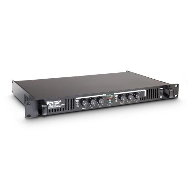 Palmer MACHT 402 è un finale di potenza stereo da 19″, sviluppato appositamente per l’utilizzo con chitarre. Possiede una potenza di 200 Watt per canale, di 400 Watt in modalità ponticello e funziona praticamente con qualsiasi cassa per chitarra. Dotato di circuiti in classe D, di un alimentatore switching particolarmente efficiente e di un ventilatore silenzioso, questo apparecchio è protetto contro sovratensione, tensione continua, cortocircuiti e surriscaldamento.