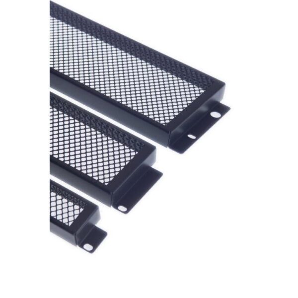 I pannelli di sicurezza grigliati per armadi Rack. Chiudono lo spazio frontale del cabinet evitando l’accesso alle parti interne del rack pur permettendo l’areazione. Utili per evitate accesso involontario al cablaggio degli armadi rack. Realizzato con materiali di ottima qualità e verniciatura con lamiera di 1 mm. Grigliatura realizzata con tramatura del 75% per avere un perfetta visibilità. Ottimizzazione di installazione con soli 2 punti di fissaggio. Leggera e resistente. Caratteristiche • Grigliatura del 75 %• Spessore in lamiera di 1 mm• Occupa 1U• Installabile a Rack 19’• Acciaio SPCC• Nero RAL9005• Dimensioni: 25 (L) x 482 (W) x 44 (H) [mm]Contenuto della confezione• Panello di sicurezza grigliato 19′ 1 U