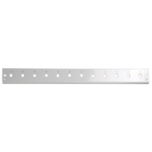 • Pannello di distribuzione 12 bussole ST • Tipologia fori D-hole• Altezza 1U• RAL 7035• Colore grigio