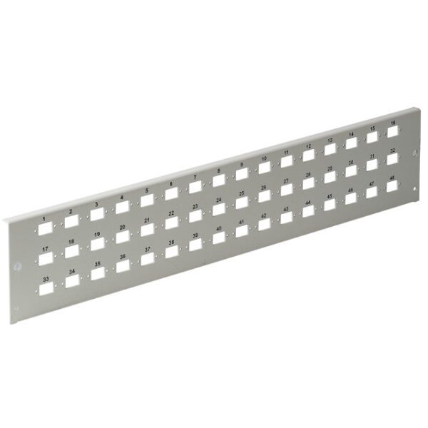• Pannello di distribuzione 48 bussole ST • Indicato per installazione su box I-CASE FO-MW2P, installabile su box ottici da 2 unità • In lamiera di acciaio da 1,5mm• Colore: Grigio RAL7035