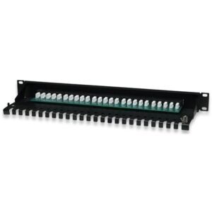 • Conforme agli standard per installazione a rack 19’• Compatibile con inseritori 110 a pressione• Disegno del circuito stampato per fornire elevate prestazioni e applicazioni flessibili• Struttura esterna in acciaio con rivestimento in plastica• Pannello posteriore integrato per la gestione dei cavi per un’installazione organizzataInformazioni generali• Pannello patch 25 porte per cavo telefonico RJ11 ISDN, 1U• 25 porte x RJ45 UTP 8 poli 4 contatti • Supporta cavi con AWG da 22 a 24 • Tipo IDC LSA-Plus Standard• TIA/EIA 568A/B• ISO/IEC 11801• Certificato CE • Conforme direttiva ROHSInformazioni fisiche• Dimensioni: 44 x 483 x 145 mm • Distanza orizzontale tra i fori di montaggio sinistro e destro: 463 mm• Distanza verticale tra i fori di montaggio superiore e inferiore: 32 mm• Peso: 1.19 kg