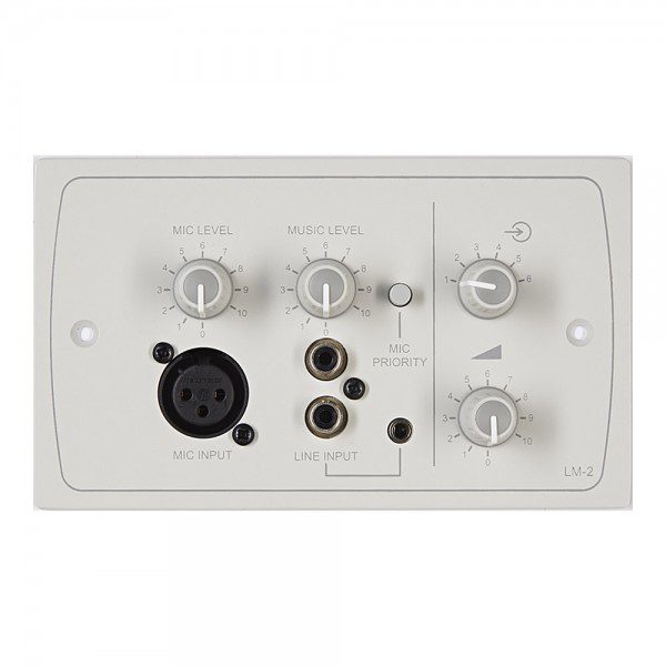 La LM-2 è disponibile per tre varianti di fissaggio: LM-2 (frutto UK 2), LM-2A (frutto USA 2) e LM-2D (frutto tedesco). Questo pannello remoto consente di collegare un microfono e/o un ingresso di livello di linea con sorgente remota e controllo del volume. È disponibile in finitura nera (LM-2B) o bianca (LM-2W) e si collega direttamente tramite connettore RJ45 a qualsiasi apparecchiatura Cloud con una porta Facility Port.