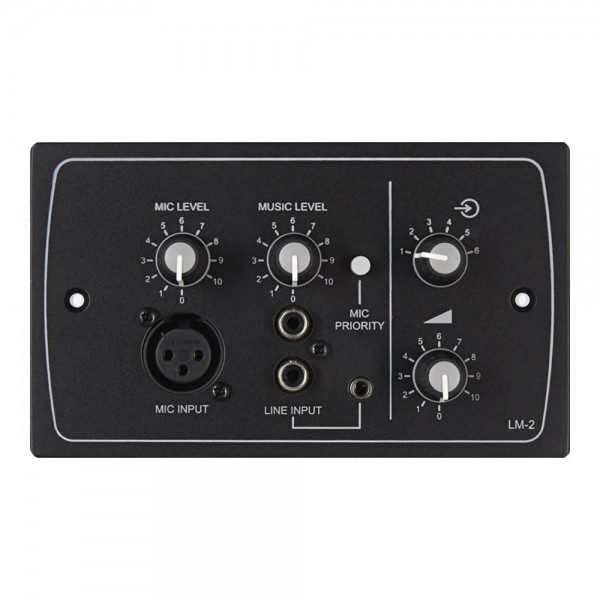 La LM-2 è disponibile per tre varianti di fissaggio: LM-2 (frutto UK 2), LM-2A (frutto USA 2) e LM-2D (frutto tedesco). Questo pannello remoto consente di collegare un microfono e/o un ingresso di livello di linea con sorgente remota e controllo del volume. È disponibile in finitura nera (LM-2B) o bianca (LM-2W) e si collega direttamente tramite connettore RJ45 a qualsiasi apparecchiatura Cloud con una porta Facility Port.