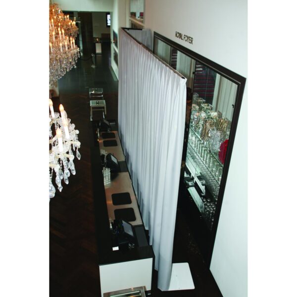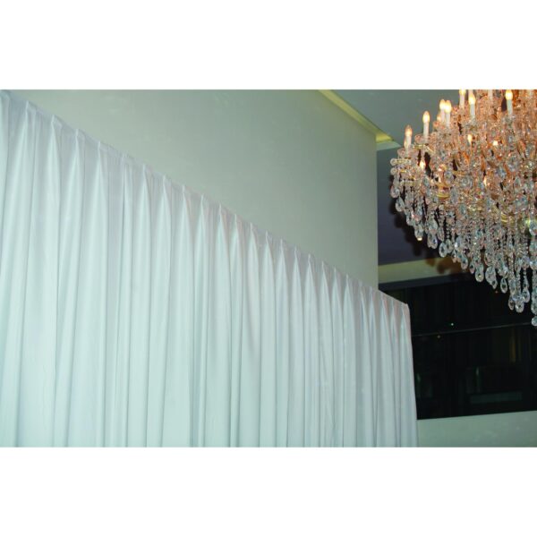 La tenda Wentex P&D – Medium Gloss Satin è una tenda leggera con un aspetto leggermente lucido. Con un peso di soli 5,16 oz/yd², è facile da maneggiare ed economica. In alto a sinistra, viene cucito un pezzo di nastro con Velcro da 11.81″ in modo che la tenda vicina possa essere attaccata con una leggera sovrapposizione. In questo modo, le tende coprono completamente ciò che c’è dietro e non lasciano alcuna apertura. Il nastro con Velcro può essere utilizzato anche per avvolgere la tenda intorno al montante per nasconderlo. Compatibile con i sistemi Pipe and Drape.