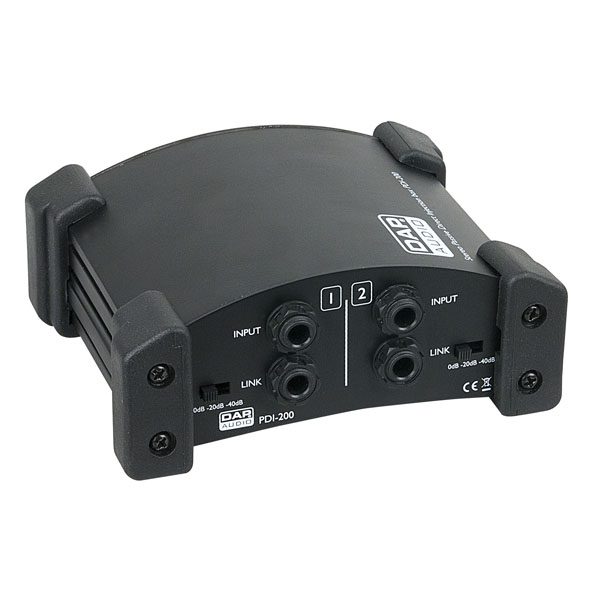Il DAP PDI-200 è un box diretto passivo a due canali. Converte un segnale HI-Z in un segnale LO-Z. Non hai bisogno di una batteria o alimentazione phantom per questa direct box.
