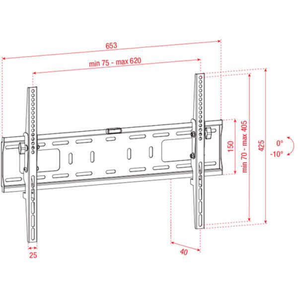 Lo Showgear PLB3770 è uno strumento perfetto per montare saldamente alla parete una TV o un monitor a schermo piatto da 37 a 70 pollici. Avrete la possibilità di inclinare lo schermo verso il basso fino a 10°. Questo vi permette di impostare facilmente l’angolo di visione appropriato per la vostra applicazione.