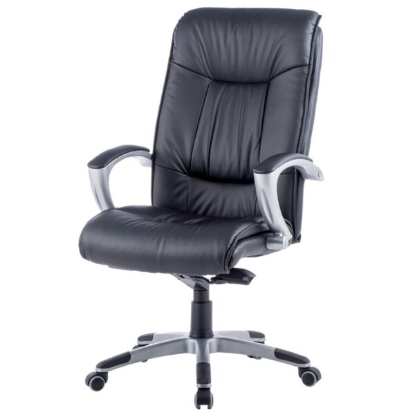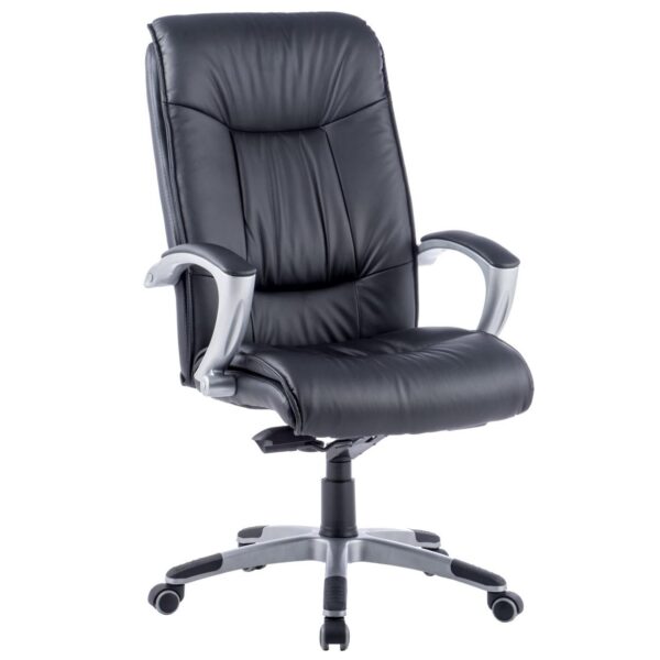 Descrizione• Robusta ed elegante poltrona imbottita in similpelle • Base resistente con ruote piroettanti in PU• Braccioli e base in nylon colore argentoCaratteristiche • Braccioli imbottiti per un maggiore confort• Schienale posizionabile • Regolazione pneumatica dell’altezza con escursione di 6,5 cm • Regolazione dell’angolatura dello schienale • Rivestimento in similpelleDimensioni • Altezza della seduta: regolabile da 42 a 52 cm• Dimensioni del sedile: 54 (L) x 51 (P)• Dimensione dello schienale: 55 (L) x 71 (H)• Peso netto: 18,8kg