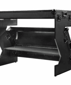 Il tavolo portatile Showgear Z-Style è una soluzione versatile e pieghevole che si trasforma facilmente in un robusto flight case. Il tavolo portatile Z-Style è ideale per i DJ, ma è molto pratico anche come tavolo per console audio e luci e può essere utilizzato anche in fiere ed esposizioni. L’esclusiva configurazione a Z del tavolo consente di utilizzare metà del flight case come spazioso piano d’appoggio, mentre l’altra metà rinforza le gambe e presenta un ripiano portaoggetti per attrezzatura e spazio extra. Il piano del tavolo è dotato di due fori per i cavi, per una facile gestione degli stessi e per garantire uno spazio di lavoro pulito e organizzato.