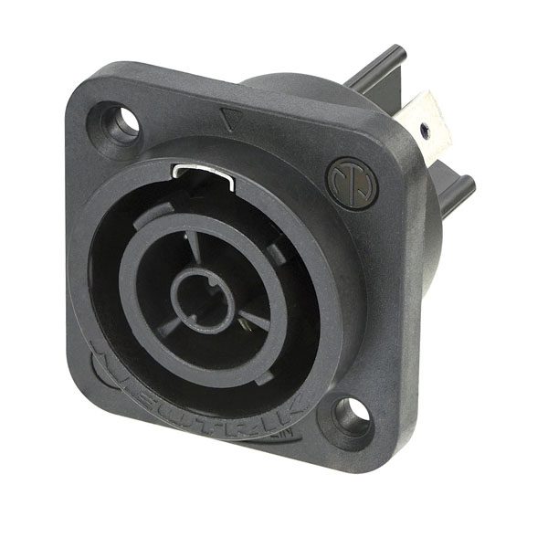 Presa da pannello NEUTRIK “powerCON TRUE1” TOP di potenza 16A (USA: 20A) con contatti terminali piatti da 1/4 “. Grado di protezione IP65 quando connesso. Colore nero, “power-in” system, 3 poli.