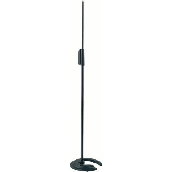Asta salvaspazio professionale diritta per microfono, con base in ghisa pesata impilabile e sistema di regolazione dell’ altezza ad una sola mano. Disponibile in nero opaco