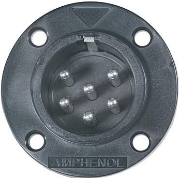 Spina da pannello di potenza serie AMPHENOL con flangia tonda in materiale termoplastico, 6 poli.
