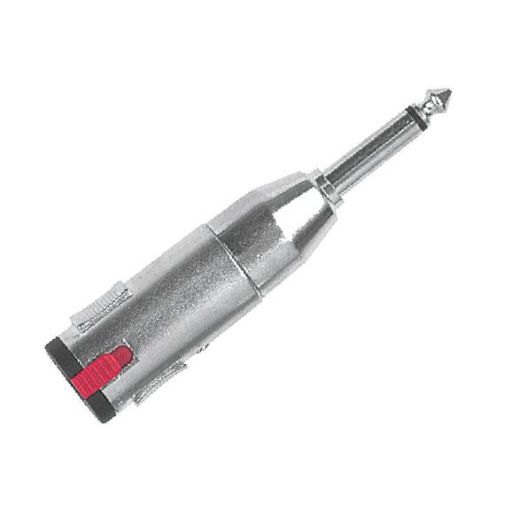 Adattatore professionale in metallo: presa con sicura jack stereo Ø 6.3 mm. -> spina jack mono Ø 6.3 mm.