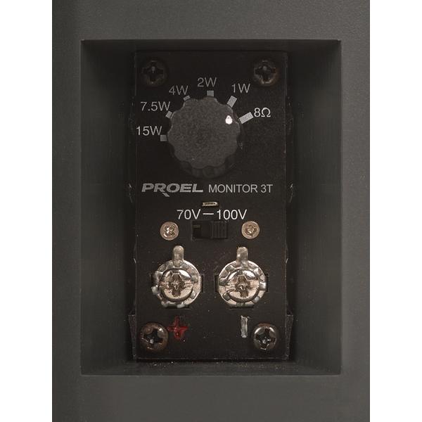 CARATTERISTICHE COMUNI Monitor due vie 30W fornito di staffa di fissaggio. Possibilità di regolazione della potenza mediante il selettore posto sul retro, morsetti di connessione con serraggio a vite. Installazione verticale o orizzontale.