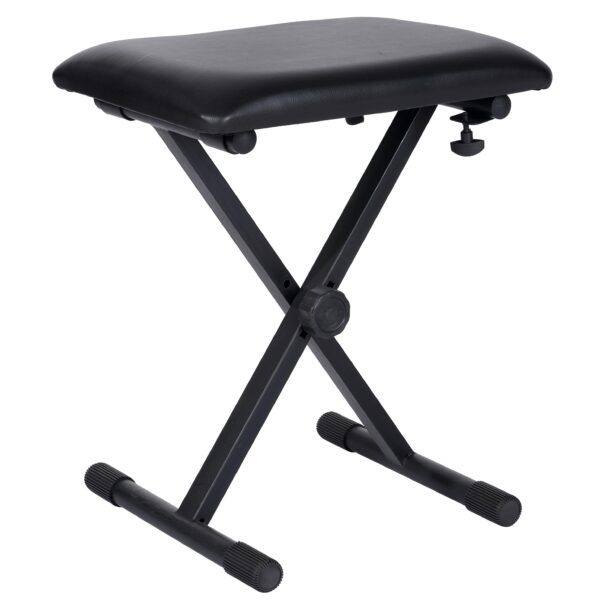 Nuova panchetta ad altezza regolabile a tre posizioni realizzata in acciaio tubolare verniciato. Cuscino imbottito in poliuretano espanso ad alta densità e copertura in PVC nero. Disponibile in nero opaco.