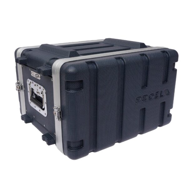 Custodia a rack 19′ – 6 unità – realizzata in ‘Polietilene FORCE’. Questo prodotto fa parte della nuova serie di custodie a rack della linea FORCE. E’ una nuova linea di prodotti che comprende un’ampia gamma di custodie professionali dedicate al settore degli strumenti musicali e delle apparecchiature per il palcoscenico ed è parte integrante dei prodotti a brand PROEL. La caratteristica principale di questa serie è rappresentata dal “mix” dei componenti e polimeri utilizzati, inclusa della fibra di carbonio, per la realizzazione dei pannelli usati nella costruzione delle custodie in ABS. Il risultato di tutto ciò è il “Polietilene FORCE” che coniuga un’eccellente resistenza alle sostanze chimiche ed agli agenti atmosferici, ed è al tempo stesso molto leggero e durevole nel tempo.