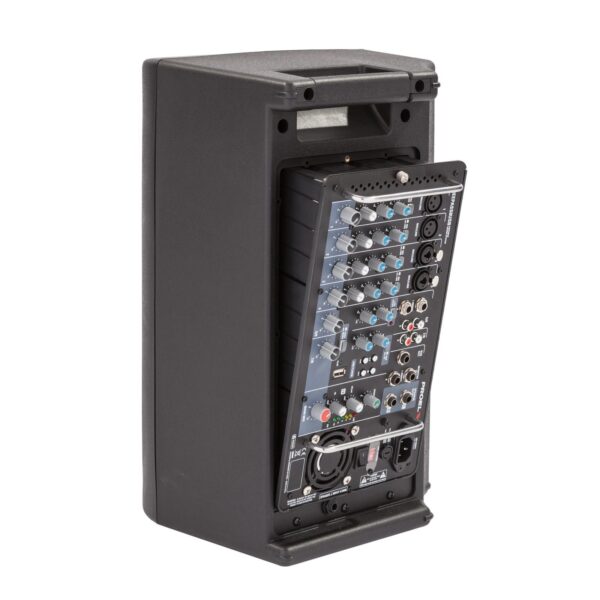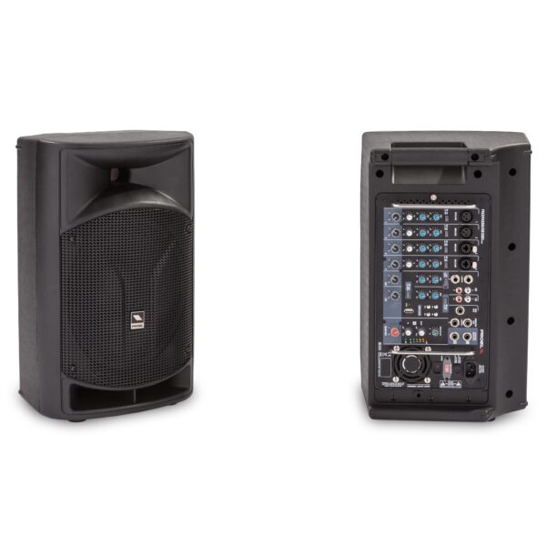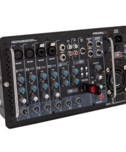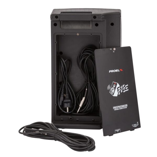 FREEPASS8USB è un sistema audio completo che unisce, in un formato estremamente compatto e portatile, tutto ciò di cui il musicista o l’utente necessitano: un mixer completo, un versatile lettore MP3, un potente amplifi catore, due diff usori a due vie e i cavi di collegamento. Benché di dimensioni ultra-compatte, veloce da allestire e facile da utilizzare, FREEPASS8USB offre un set completo di funzioni ed una qualità sonora sorprendente per sistemi audio di questo tipo. Il mixer 8 canali, amplificato con 2×250 watt e dotato di connettore USB per la riproduzione di files MP3, è alloggiato nel vano posteriore di uno dei due diffusori e può essere facilmente rimosso per un classico utilizzo desktop. L’altro diff usore include un capiente scomparto che può contenere i cavi di connessione ad altri accessori. I due cavi PROEL ad alta qualità forniti con il sistema sono dotati di robusti connettori a jack in metallo. I diffusori in polipropilene a due vie con driver a compressione da 1,35” caricato a tromba e woofer da 8” offrono un suono full-range definito e nitido oltre ad un elevato livello di pressione sonora. Una comoda maniglia sul lato superiore e l’alloggiamento per il supporto agevolano trasporto ed installazione. Grazie alla portabilità e versatilità FREEPASS8USB può essere utilizzato in una moltitudine di applicazioni, come esibizioni dal vivo di cantanti o piccoli gruppi, eventi sportivi o didattici e presentazioni di vario genere.