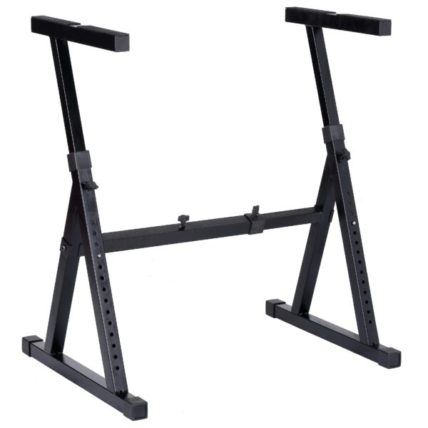Supporto a “Z” per mixer / tastiera, realizzato in acciaio tubolare. Regolabile in larghezza ed altezza. Colore nero opaco. Disponibile anche nel colore bianco opaco.