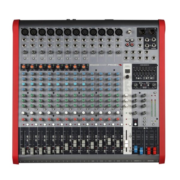 Dopo aver fornito per anni a migliaia di utilizzatori soddisfatti i migliori strumenti di missaggio, abbiamo deciso di rinnovare la nostra Serie M con un ampio assortimento di novità. I nuovi mixer compatti Series M sono stati aggiornati con caratteristiche avanzate e dotati di un nuovo raffi nato design. Oltre a mantenere la qualità audio superiore, il set completo di funzioni e il numero di ingressi MIC più elevato della categoria, che sono stati i punti di forza della serie precedente, abbiamo introdotto una serie di funzioni ‘intelligenti’ aggiuntive, tra cui il routing USB ed i COMPRESSORI sui canali di ingresso. Tutti i modelli includono uno dei migliori processori di eff etti della categoria, il DSP PROFEX a 24 bit di PROEL, in grado di fornire 256 presets di qualità superiore (inclusi mono e stereo TAP DELAY e TAP DELAY + REVERB) con un comodo display LCD. Ideati e progettati in Italia dal Dipartimento Ricerca e Sviluppo PROEL, i mixers Serie M sono alloggiati in eleganti case in metallo ultra-resistenti con fianchi in ABS, in grado di garantire un utilizzo prolungato senza problemi. Caratteristica unica nella categoria, tutti i modelli includono di serie sia la borsa imbottita per il trasporto che gli adattatori per il montaggio in rack standard da 19”. M1622USB, con 16 ingressi di cui 12 microfonici, ora off re 4 mandate AUX, l’USB routing ed anche COMPRESSORI intelligenti a singolo controllo sui canali MONO.