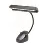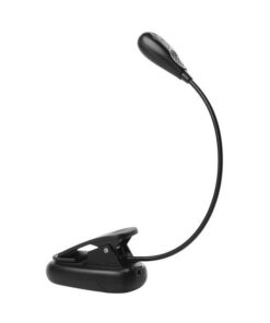 Lampada a LED per leggio con singolo flessibile in metallo dotato di diffusore con due LED ad alta efficienza singolarmente controllabili. Morsetto universale imbottito per un semplice e versatile utilizzo con pannelli di spessore fino ad un massimo di 25mm. Fornita di serie con cavo USB (Nota: Non ricarica le batterie) e 3 batterie AAA da 1,5V. Disponibile in nero opaco.