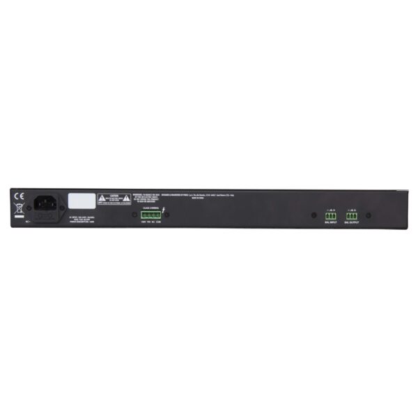 Grazie all’impiego di un alimentatore switching in tecnologia SMPS (switch mode power supply) e all’uscita a tensione costante a 70/100V ottenuta elettronicamente senza trasformatori, è stato possibile realizzare l’amplificatore in una sola unità rack, riuscendo a contenere sia i pesi che gli ingombri.