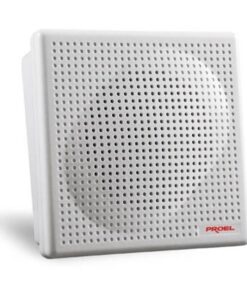 Diffusore sonoro a plafoniera per controsoffitto realizzato in lamiera stampata di colore bianco. Installazione rapida e sicura tramite appositi ganci con scatto a molla. Corredato di traslatore di linea per collegamento su impianti a tensione costante 100V.