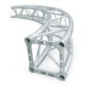 Tutte le configurazioni delle truss Proel consentono di realizzare cerchi aventi un diametro minimo di 2 metri. La misura del settore di cerchio sarà di volta in volta diversa a seconda del diametro. Oltre un certo diametro, si preferisce aumentare il numero di settori, senza però superare la lunghezza massima di 3,5 mt. per non incorrere in problemi inerenti al trasporto. Oltre a cerchi regolari, è possibile creare, a disegno, forme ellittiche e curve irregolari. Le tipologie del settore di cerchio sono: • Una per la versione a sezione piana con posizione orizzontale. • Una per la versione a sezione triangolare con vertice basso-alto. • Una per quella quadrata. Per quanto riguarda le caratteristiche dei tubi e delle piastre di connessione si rimanda al dettaglio del traliccio base scelto.