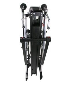 Nuovo e robusto elevatore frontale a torre, molto potente e versatile da usare, particolarmente adatto al sollevamento di sistemi line-array, strutture truss molto pesanti e schermi a LED. Prodotto semplice da trasportare, nonostante la mole, grazie alle ruote inserire nella base e di facile impiego anche su superfici irregolari. Il sistema di elevazione è quello tradizionale con verricello WCH e funi in acciaio. I piedi della base hanno ciascuno un’ampia regolazione indipendente che rende più agevole il posizionamento anche su superfici inclinate o irregolari. Prodotto con certificazioni [CE 89/392 EWG] [BGV C1, BGG 912].