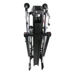 Nuovo e robusto elevatore frontale a torre, molto potente e versatile da usare, particolarmente adatto al sollevamento di sistemi line-array, strutture truss molto pesanti e schermi a LED. Prodotto semplice da trasportare, nonostante la mole, grazie alle ruote inserire nella base e di facile impiego anche su superfici irregolari. Il sistema di elevazione è quello tradizionale con verricello WCH e funi in acciaio. I piedi della base hanno ciascuno un’ampia regolazione indipendente che rende più agevole il posizionamento anche su superfici inclinate o irregolari. Prodotto con certificazioni [CE 89/392 EWG] [BGV C1, BGG 912].