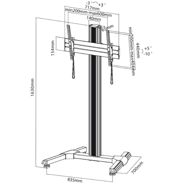 Supporto fisso per uso professionale, realizzato in alluminio e acciaio. Può sostenere LED, LCD o TV a schermo piatto fino ad 65 kg di peso e con un range da 37” a 70” – ( VESA 600×400 max). Il supporto per la TV si regola facilmente e può essere posizionato fino ad un altezza massima di 1630 mm per garantire una perfetta visualizzazione in ogni condizione di utilizzo. Provvisto di una solida base fissa in alluminio, che all’occorrenza può essere dotata delle ruote vendute separatamente. Mediante l’utilizzo dell’accessorio PRSS30BRK, sempre venduto separatamente, si può trasformare in un supporto doppio fronte retro. Dotato di un pratico sistema per l’organizzazione dei cavi. Rappresenta una soluzione ideale per l’utilizzo in conferenze, esposizioni ed altre presentazioni professionali.