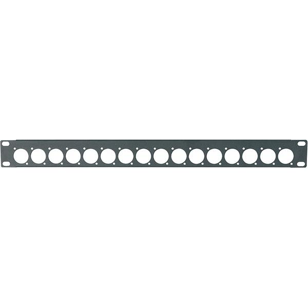 Pannello preforato 1 unità rack 19′ con N. 16 fori per connettori da pannello XLR (ø 24 mm.).