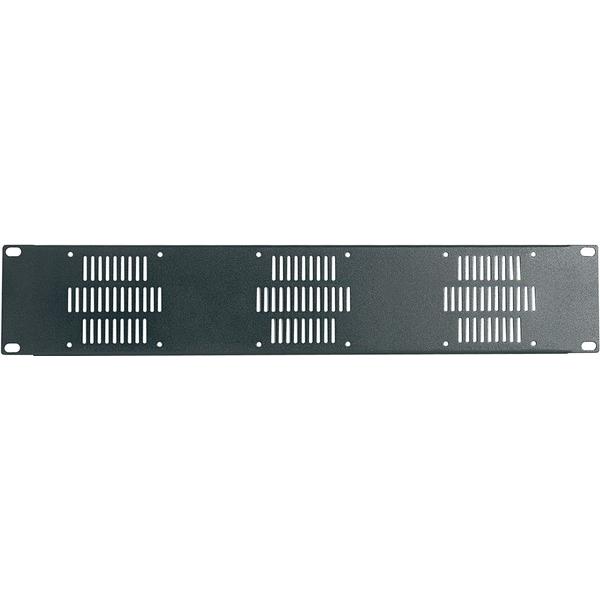 Pannello per ventilazione 2 unità rack 19′ con scanalature per 3 ventole 80×80 mm.