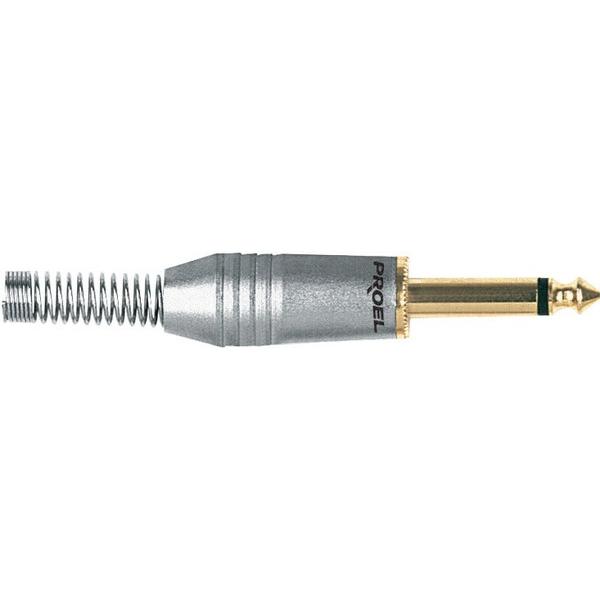 Jack mono Ø 6.3 mm.- 1/4′ professionale con manicotto in ottone nichelato, contatti dorati e molla passacavo flessibile Ø 7.3 mm. Colore: Argento.
