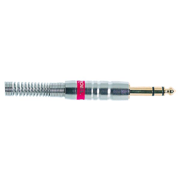 Jack stereo Ø 6.3 mm.- 1/4′ professionale, contatti dorati, manicotto in ottone nichelato argentato e molla passacavo flessibile Ø 7.3 mm. Colore: Argento.