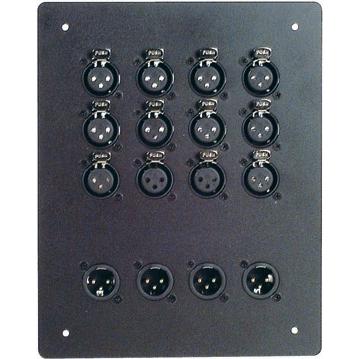 Placca di connessione per 16 XLR in lamiera zincata verniciata a polveri epossidiche antigraffio, finitura nero, completa di viti per fissaggio.
