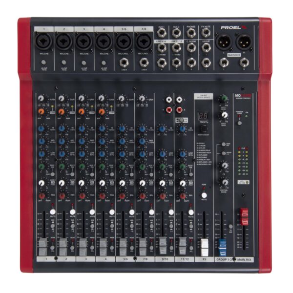 La serie MQ include 5 modelli con 6, 10, 12 e 16 canali, in grado di soddisfare le più svariate applicazioni di rinforzo sonoro. Accuratamente disegnati e ingegnerizzati in Italia da PROEL R&D, i mixer MQ sono alloggiati in scocche ultra-resistenti, che garantiscono una durata prolungata ed un utilizzo intensivo su ogni tipo di palco.