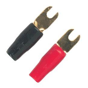Terminale a ‘forcella’ con contatti dorati e manicotto protettivo.