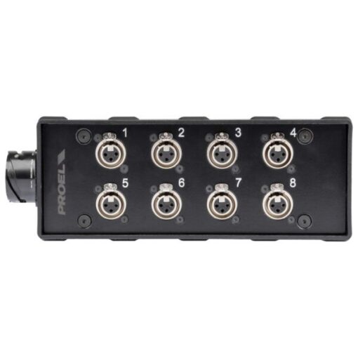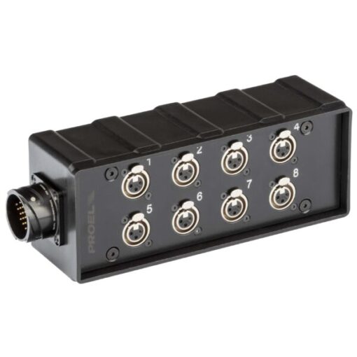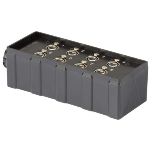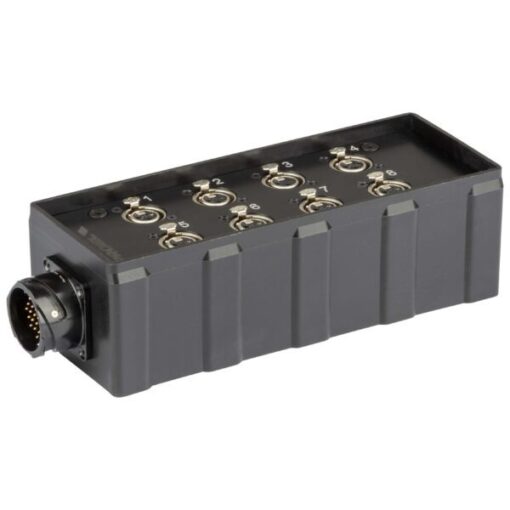 Audio box in materiale plastico antiurto cablato con 8 prese pannello XLR 3P NEUTRIK e connettore multipolare di collegamento 25 Poli (CMIL25MP).