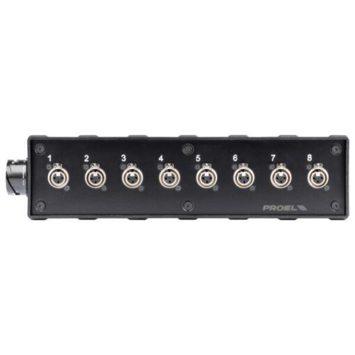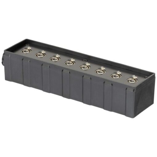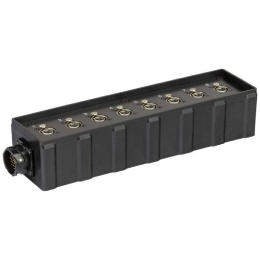 Audio box in materiale plastico antiurto cablato con 8 prese pannello XLR 3P e connettore multipolare di collegamento 25 Poli (CMIL25MP).